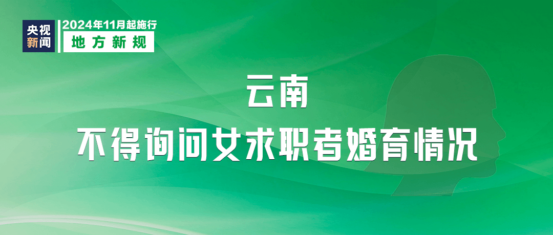 《云南省女职工劳动保护特别规定》11月1日起施行股票哪个平台好,明确用人单位在招录(聘)过程中,除个人基本信息外,不得进一步询问或者调查女性求职者的婚育情况。
